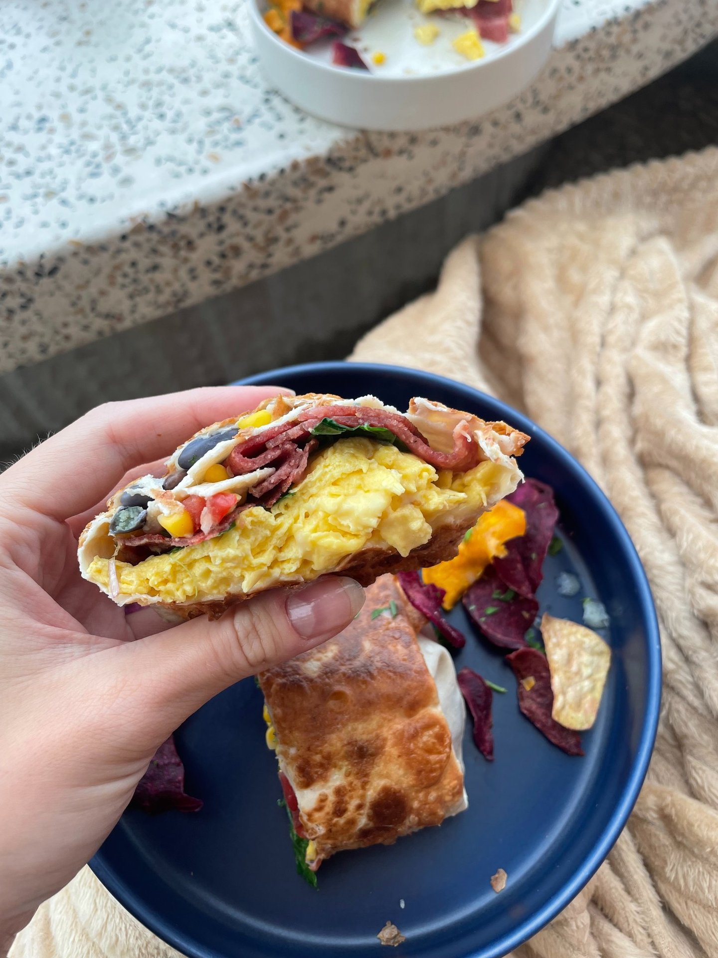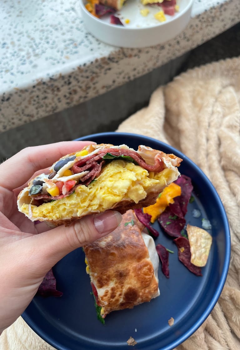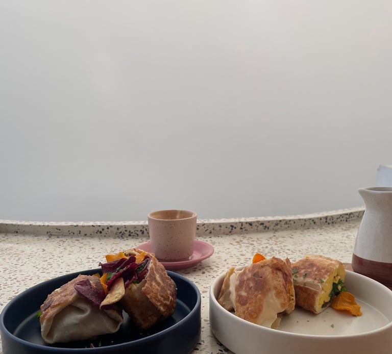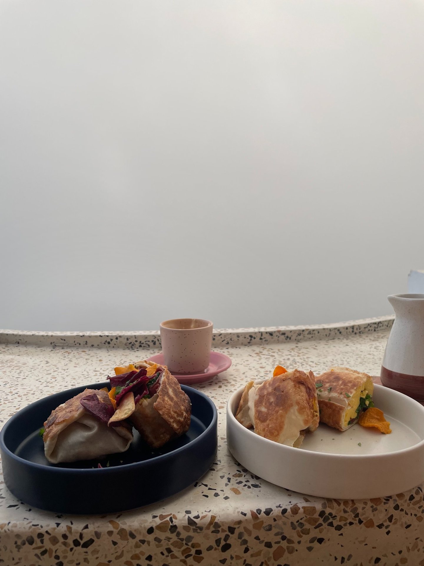 Śniadanko, które było tak duże (i przepyszne!), którego nie dojadłam, kosztowało 17 zł (dwa spore wrapy z bekonem, serem, jajeczniczką i salsą kukurydzianą, do tego kawka za 9 zł, więc za śniadanko full wypas w instagramowej @Paperhills z widokiem na wulkan,