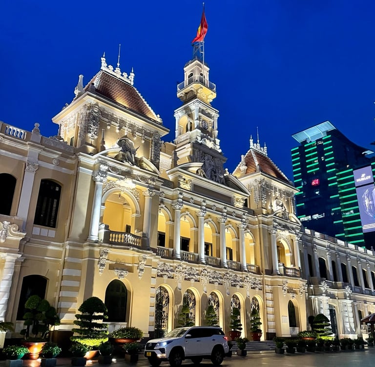 Ho Chi Minh City Hall (Hôtel de Ville) - an impressive example of French colonial architecture, now serving as the headquarters of the city’s People’s Committee. It’s located right next to the statue of Ho Chi Minh.